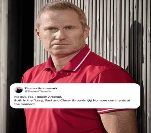 阿森纳最近聘请世界级界外球教练托马斯·格罗内马克担任顾问,格罗内马克本人亲自宣布了这一消息,枪手的界外球有望迎来质的飞跃。